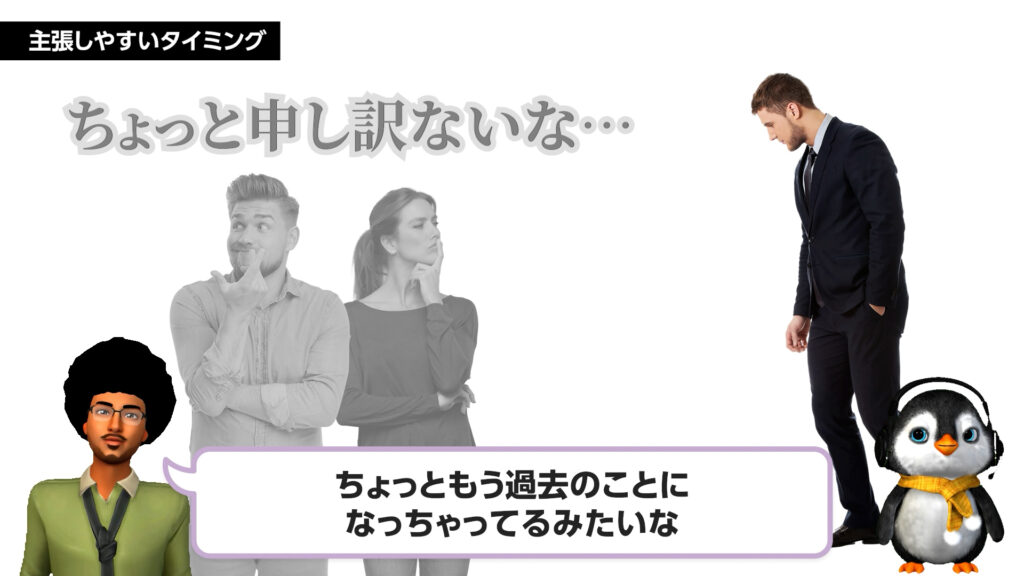 - 「申し訳ない」と感じている一瞬の隙を逃さない「タイミング」の重要性を理解できます。