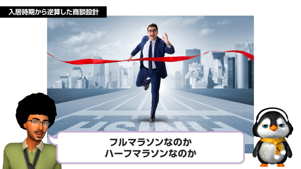 商談は「ゴールからの逆算」で設計すべきものです。入居希望時期という「ゴールライン」を明確に定め、そこから逆算して「いつまでに何を決めるべきか」というマイルストーンを置くことが重要です。また、長期戦(マラソン)を意図的に短期戦(短距離走)に変えるための戦略的な仕掛けについても考察します。