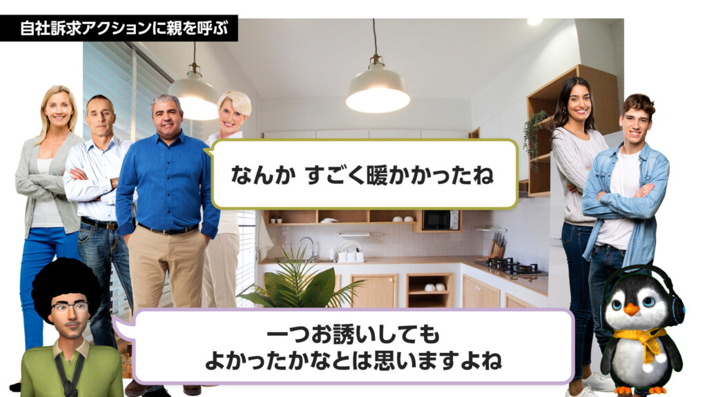 POINT② 自社訴求アクションに親を呼ぶ